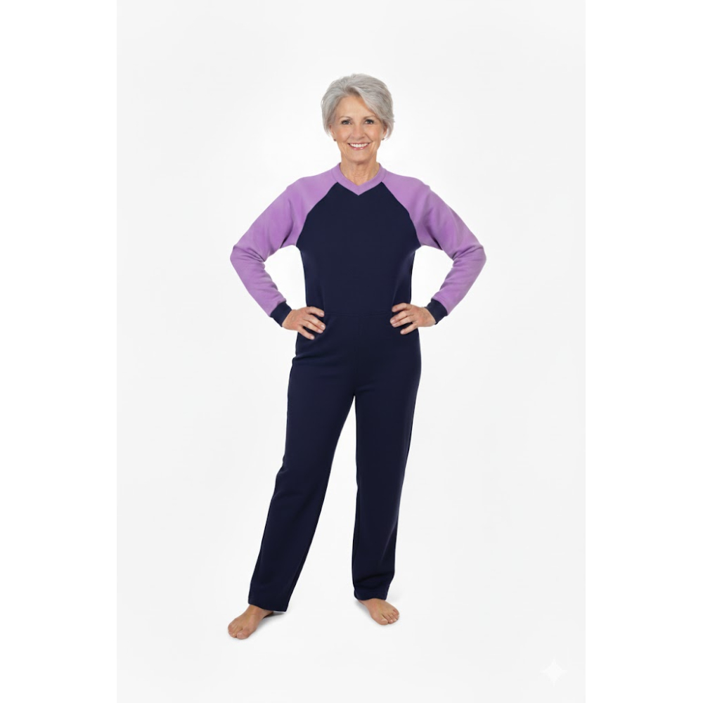 La fermeture dans le dos évite le dévêtissement de la personne qui le porte. Ainsi les protections urinaires restent en place pendant la nuit. Le look "sportswear" bicolore permet également de le porter en journée.
